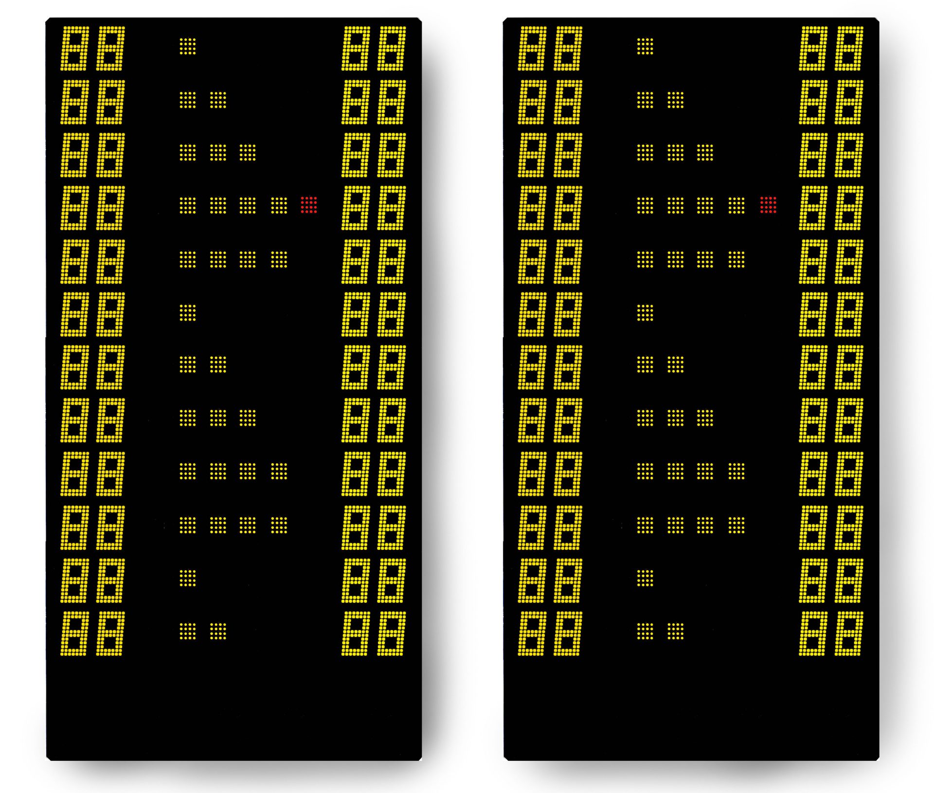 2 add-on modules for BASIC LED 300 Scoreboard with LED digits in SMD technology. Shows individual fouls and goal per player in basketball.