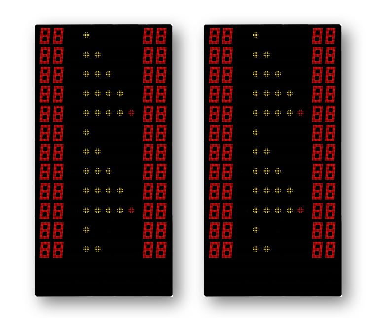 2 add-on modules for BASIC LED Scoreboard with LED digits in SMD technology. Shows individual fouls and goal per player in basketball.