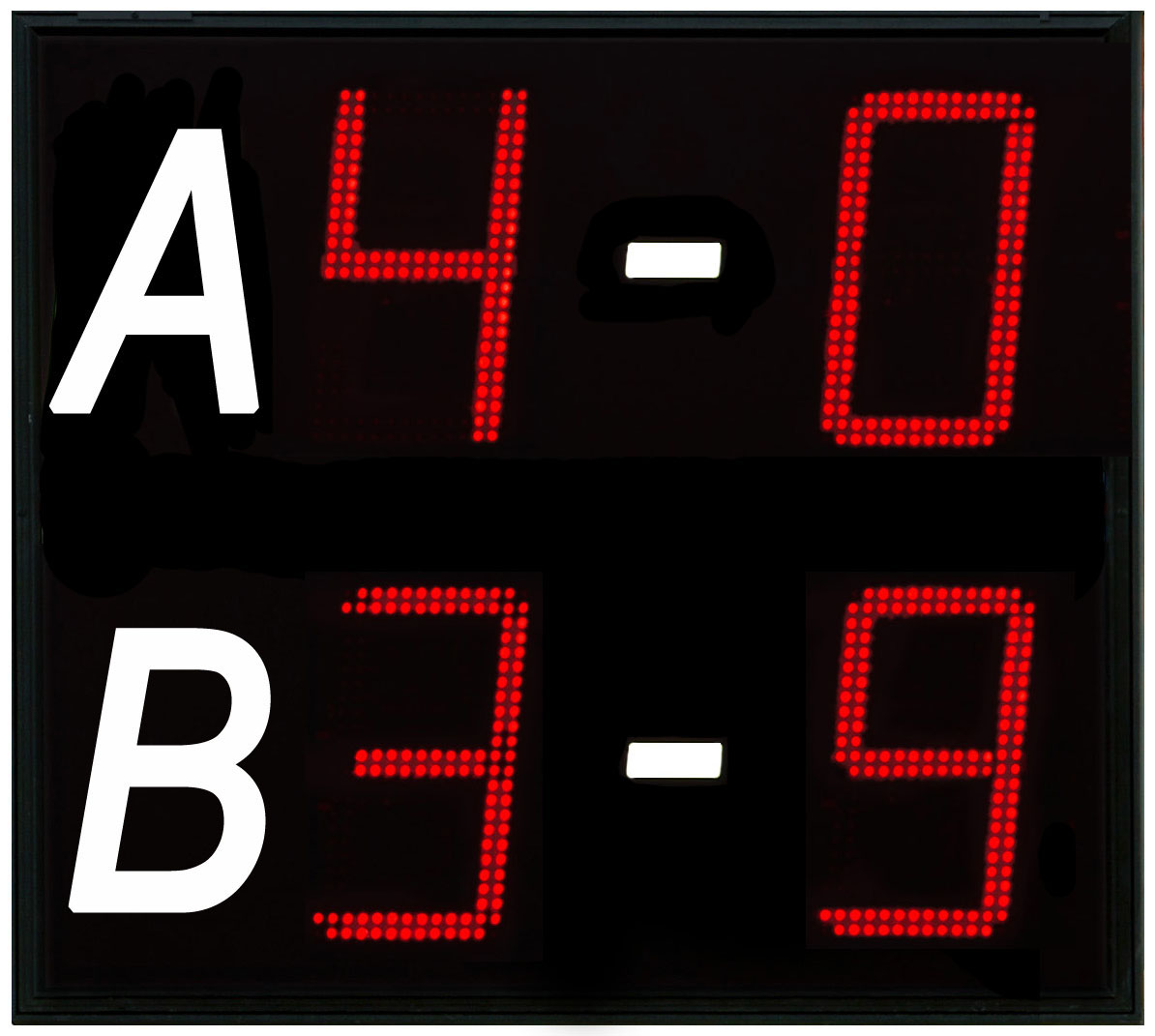Add-on module for scoreboard with LED digits in SMD technology that shows scores from other games (max 9-9).