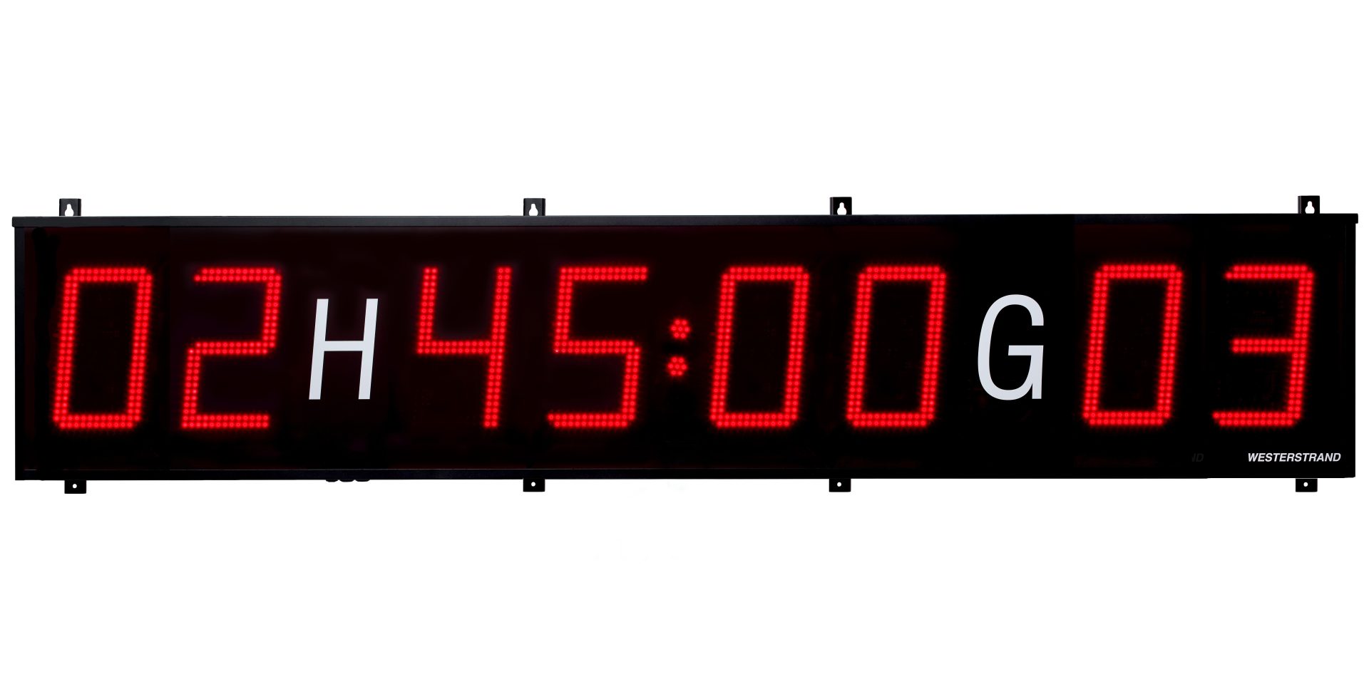 Scoreboard with LED digits in SMD technology. Its design makes it suitable for e.g. soccer and rugby. The board is operated via a wireless remote unit.