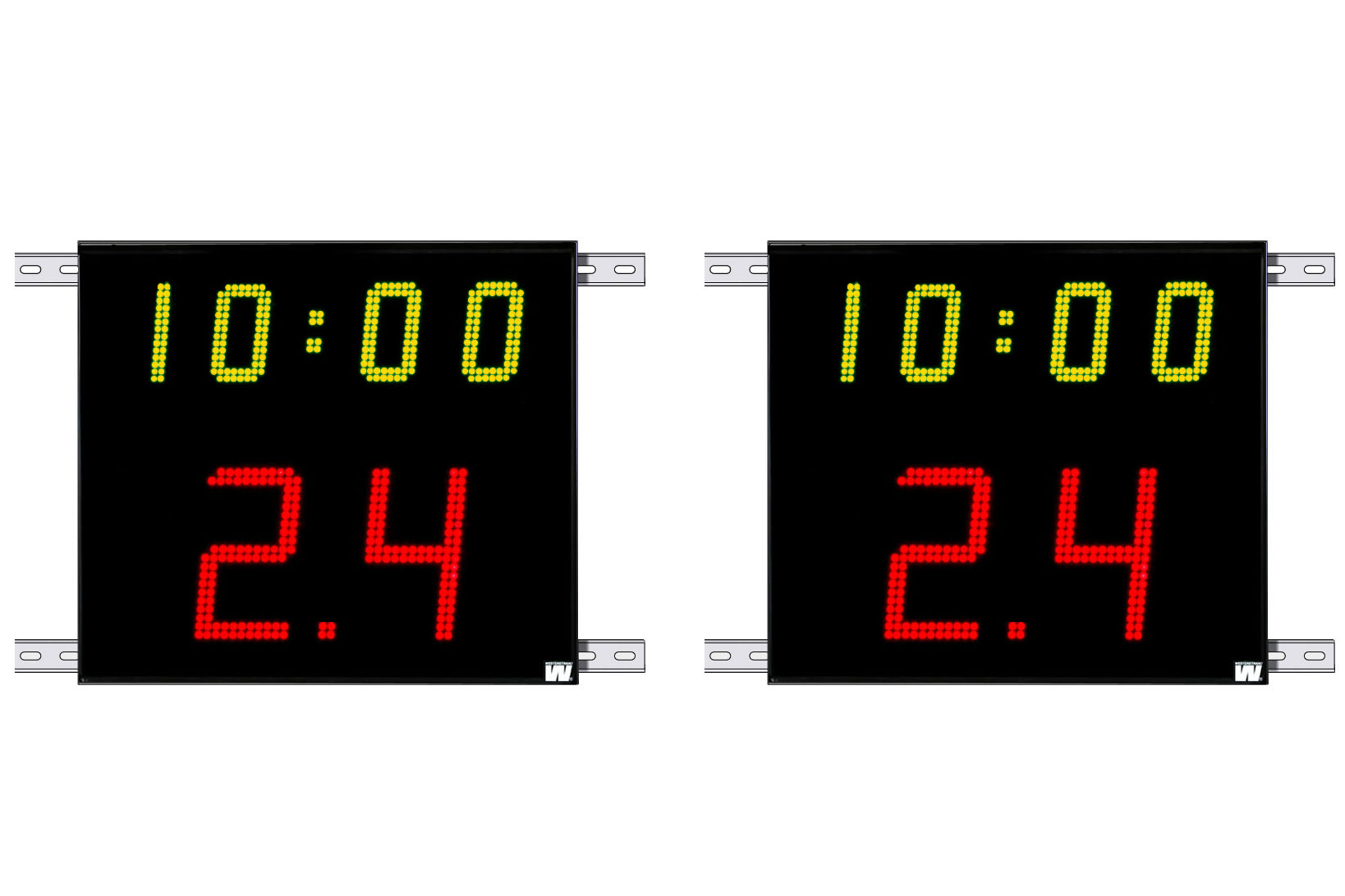 2 add-on modules with built-in siren for Scoreboard BASIC LED. Shows the countdown time for game time and the 14/24 second rule in basketball. When the shot time countdown is complete, the siren sounds automatically. The boards are also prepared for relays for connecting LED stripes.